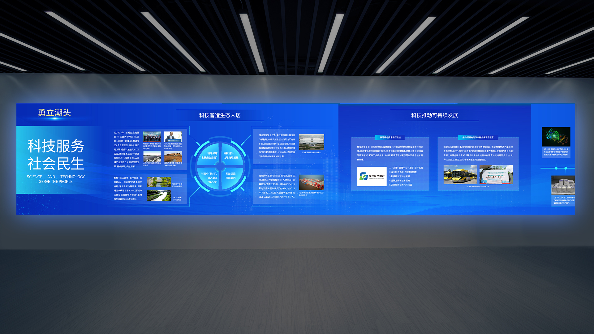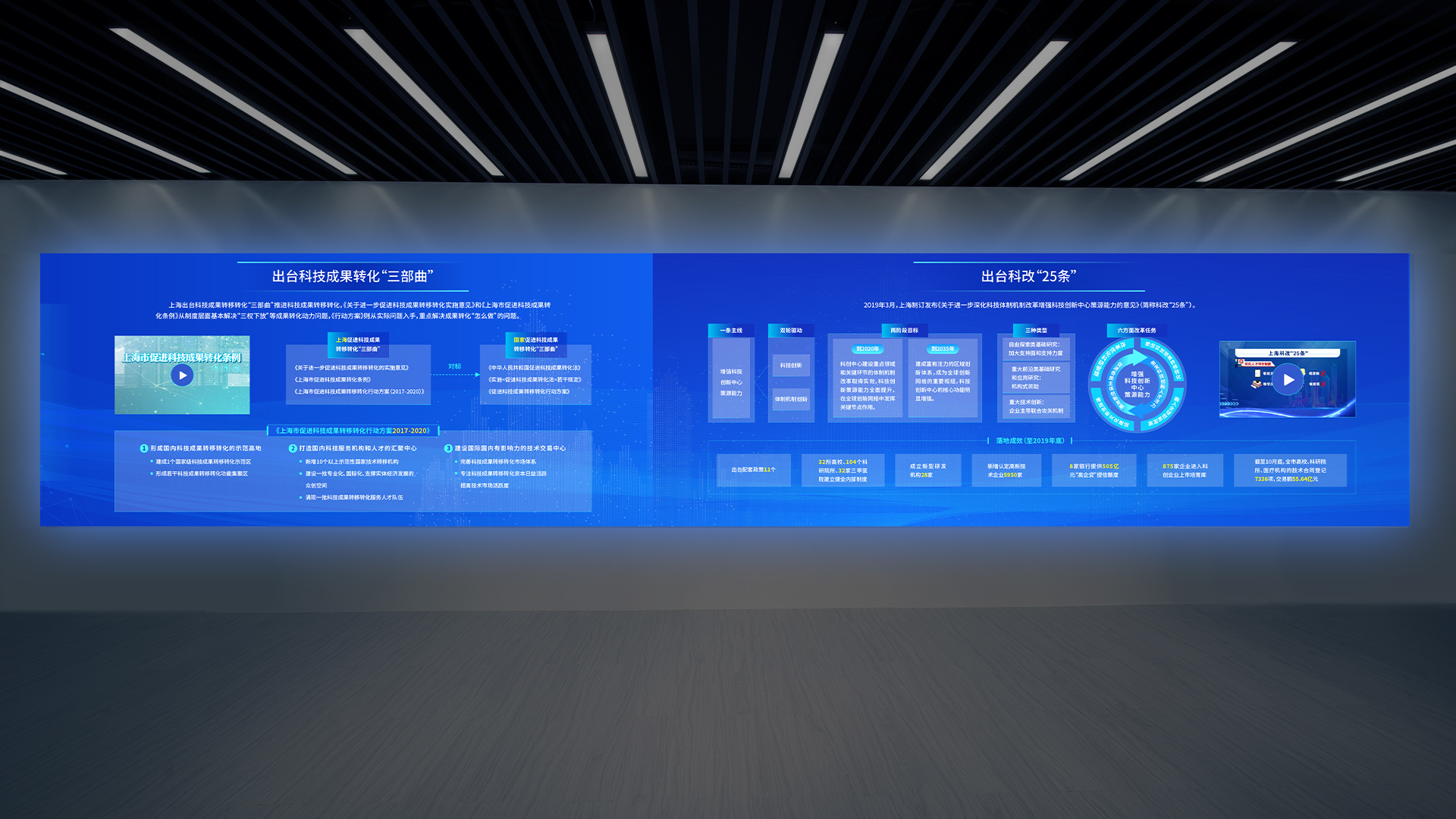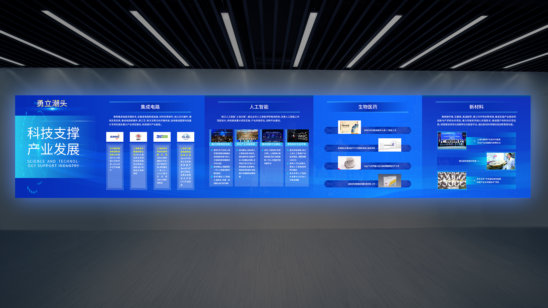 本次和與德為上海科創之窗展廳設計的風格現代、簡約,以創新和科技為主題,強調科技和人文的融合。展廳的整體空間采用白色為主色調,配合一些暖色調的燈光和配飾,營造出一個舒適、溫馨的氛圍。讓來訪者可以親身感受科技的魅力,增加參觀者的參與感和體驗感。此外,展廳內還設置了創新創業項目展示區、創新創業成果展示區等,展示了科創之窗所支持的創新創業項目和成果,讓來訪者了解到科技創新的最新成果和前沿技術。整個展廳的設計風格簡潔、明快、富有活力,很好地展現了上海科創之窗的創新、開放和活力的形象。