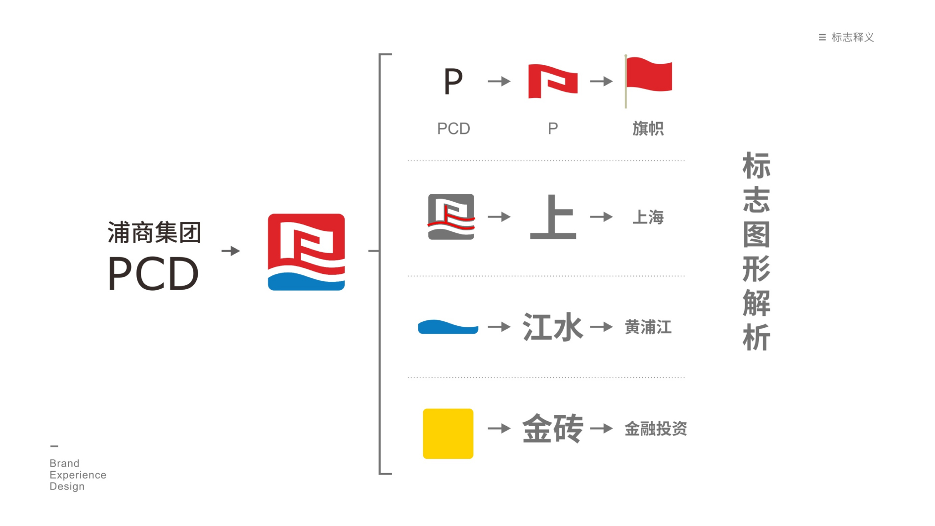 和與德通過探討浦商集團相關的的商業趨勢、審美趨勢和企業戰略,提煉出“浦東、綜合、民生、綜合、平臺、創新、現代”等關鍵詞可能性,依此設計品牌標志。“P”字母的形狀象征民生大旗,符合保障民生之意.代替政府執行便民配套(菜場,超市等),“上”的自省象征上海,江水的弧度象征黃浦江,輪廓象征金磚、金融投資,體現招商、建設、融資、投資等功能。由此體現了浦商集團的現代化面向國際化的滾動增值的內涵。同時他又象征著浦商集團將隨著國家的改革發展之潮發揮著下承.上啟下,昂揚向前的發展態勢。