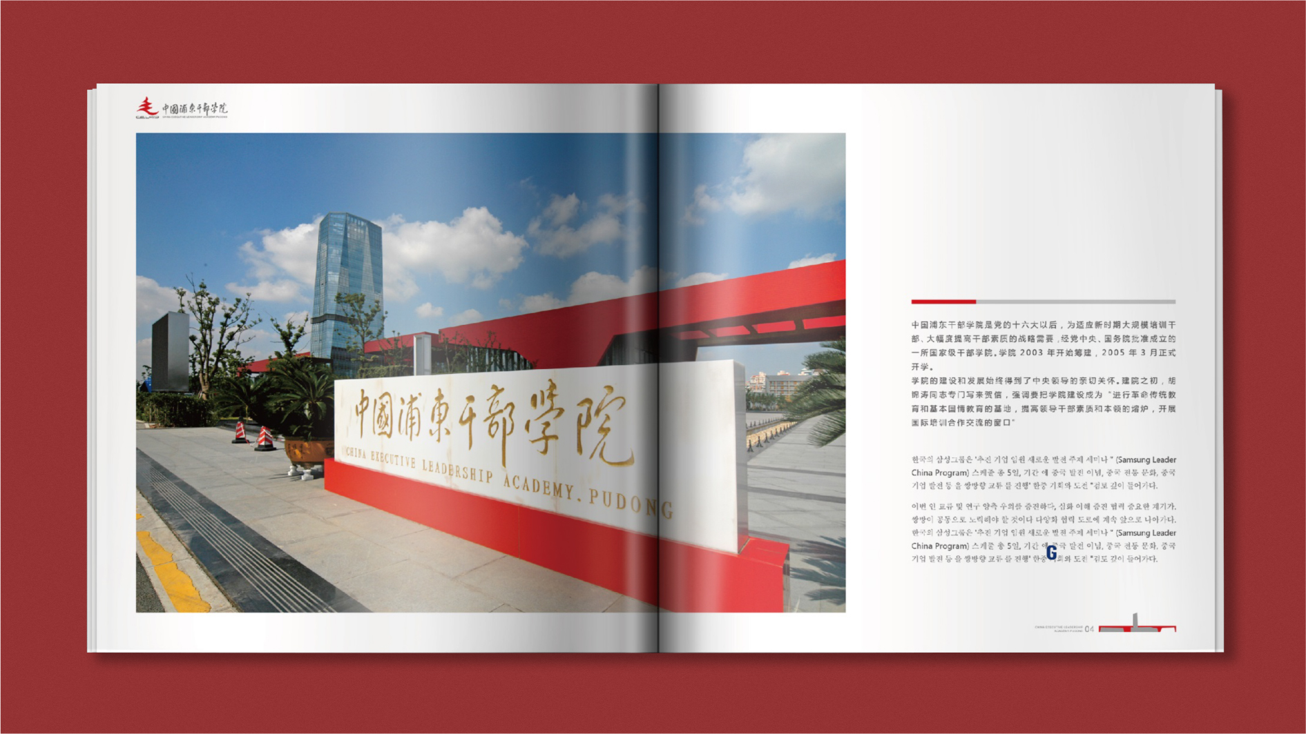 作為對外交流的傳播需要,和與德為浦東干部學院設計了“中韓雙語畫冊”,促進了與韓國三星集團高管“促進企業新發展專題研究班”的交流,拓展了合作的多樣化,和州共濟,共同發展。