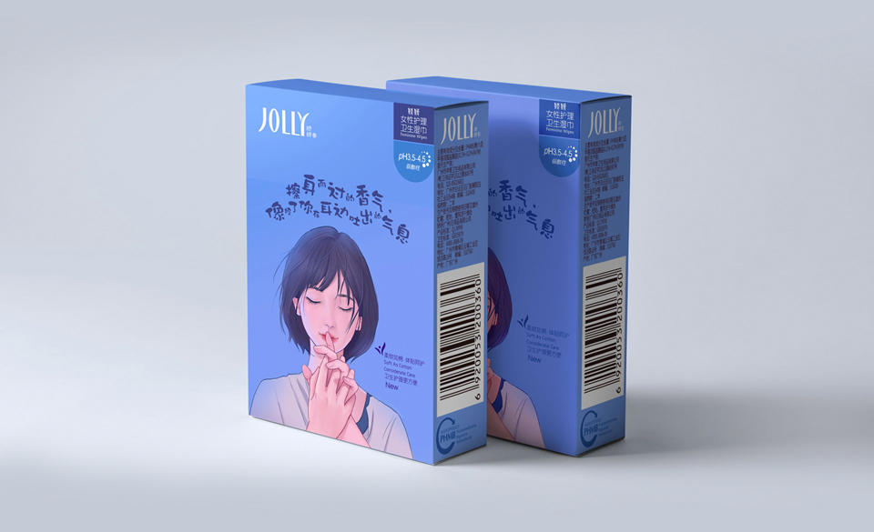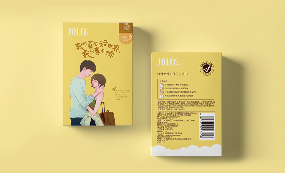 它小巧玲瓏,采用獨(dú)立包裝,方便攜帶;含有效成分PHMB,辟味清涼;無(wú)論是生理期間,還是日常護(hù)理、外出旅游和孕產(chǎn)時(shí)期,嬌艷JOLLY女性護(hù)理衛(wèi)生濕巾都是為女性趕走煩惱的貼心小幫手,喚回清爽好自信。此次,和與德有幸受托為其進(jìn)行產(chǎn)品包裝的更新升級(jí),賦予產(chǎn)品更人性化的特征。